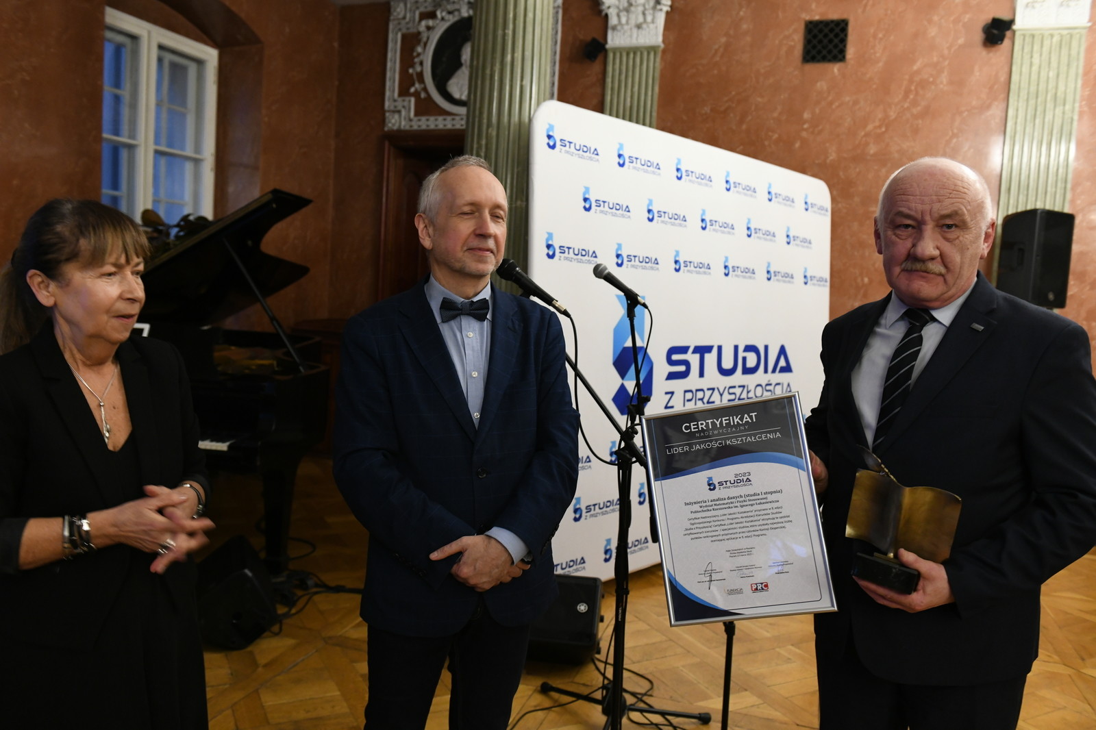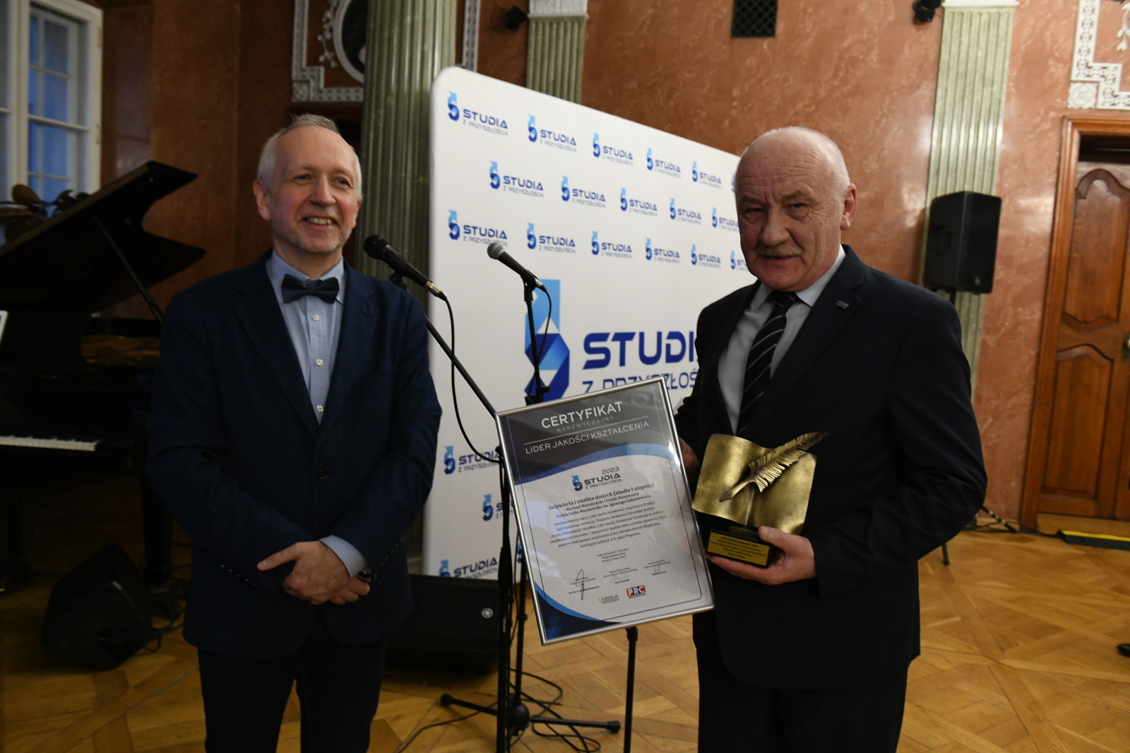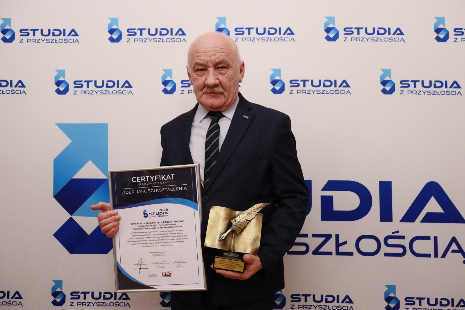 Dodatkowo nasz kierunek studiów został ponownie wyróżniony Certyfikatem Nadzwyczajnym „Lider Jakości Kształcenia”. Otrzymują go te spośród certyfikowanych kierunków, które zyskały najwyższą liczbę punktów rankingowych przyznanych przez członków Komisji Eksperckiej, oceniającej aplikacje w 8. edycji Programu. Statuetkę i certyfikaty odebrał dziekan WMiFS dr hab. Czesław Jasiukiewicz, prof. PRz.