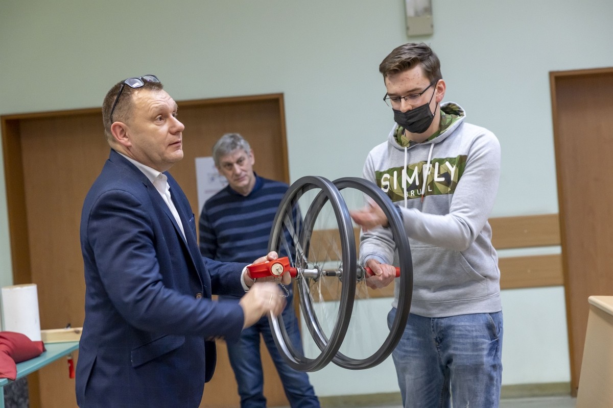 Innowacja ta była możliwa, ponieważ od obecnego roku akademickiego większość zajęć wykładowych z fizyki realizowana jest w jednej sali wykładowej (S2) przygotowanej do prowadzenia demonstracji. Mamy nadzieję, że tego typu zajęcia na stałe zagoszczą w murach Politechniki.