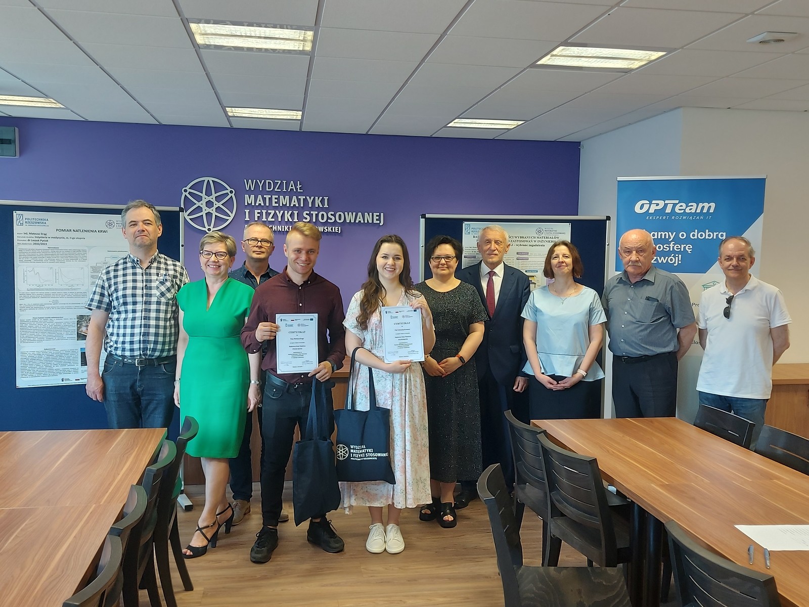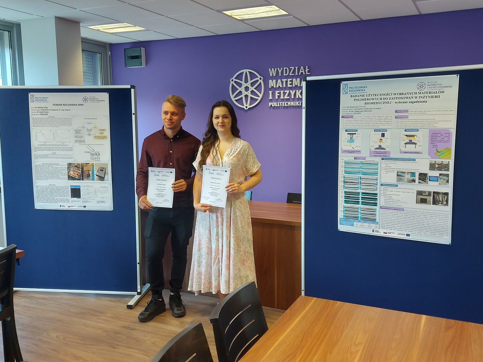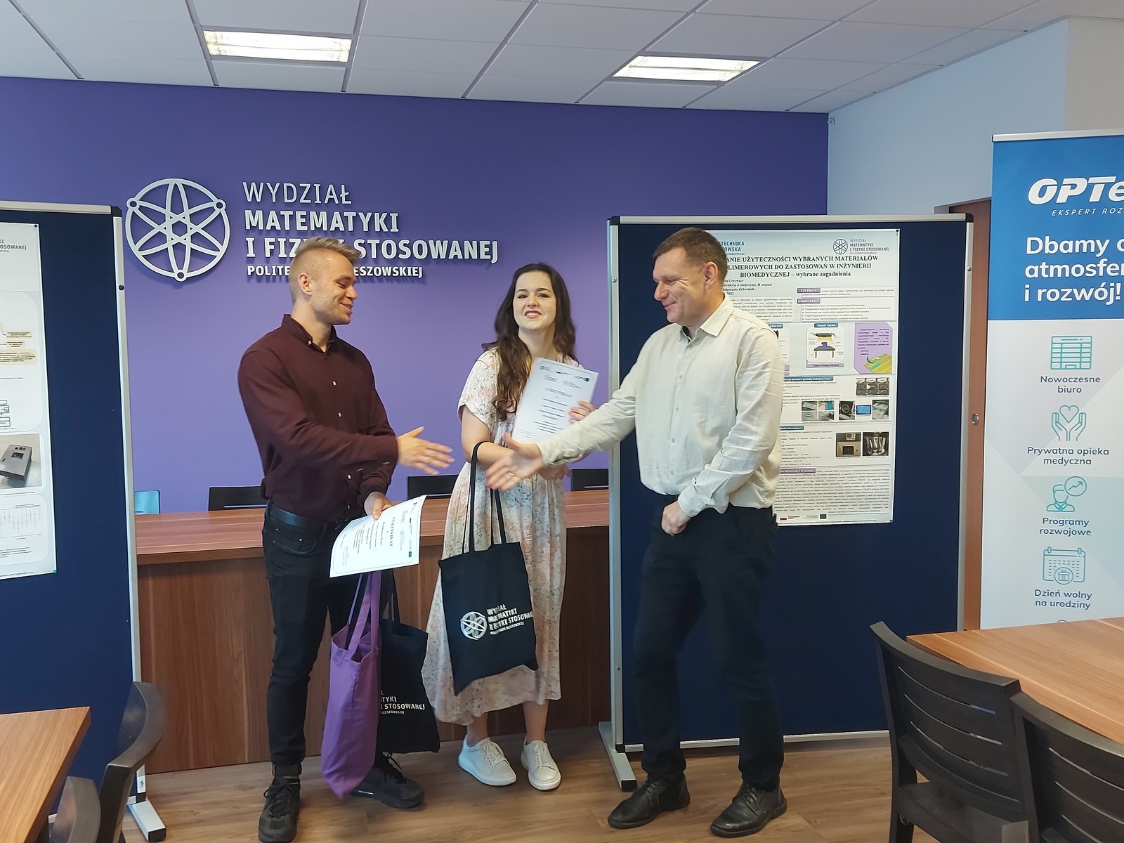 W dniu 22.06.2023 roku odbyło się rozstrzygnięcie konkursu Dyplomowa Sesja Plakatowa POSTER MASTER na Wydziale Matematyki i Fizyki Stosowanej. Do konkursu przystąpili studenci ostatniego semestru studiów II stopnia z kierunku inżynieria w medycynie przygotowując postery:
