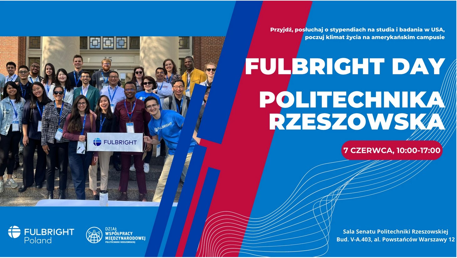 Politechnika Rzeszowska oraz Polsko-Amerykańska Komisja Fulbrighta zapraszają na wspólne wydarzenie. Już w środę, 7 czerwca podczas Fulbright Day na Politechnice Rzeszowskiej, będzie można posłuchać o ofercie stypendialnej programu Fulbrighta, doświadczeniu pobytu w USA kilkorga absolwentów, a także dowiedzieć się więcej o specyfice studiów i badań w Stanach Zjednoczonych, o amerykańskim społeczeństwie i życiu na kampusie od Amerykanów – obecnych stypendystów Fulbrighta w Polsce. W ramach wystąpień o doświadczeniach będą opowiadały osoby z następujących dziedzin: inżynieria mechaniczna, informatyka, nauki o polityce i administracji, inżynieria chemiczna, językoznawstwo i literatura. Prezentacje obejmują takie tematy jak: sztuczna inteligencja, różnice w akcencie w zależności od regionu Stanów Zjednoczonych, struktura administracji prezydenta USA i wiele innych.