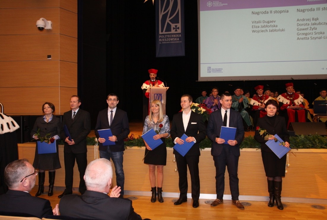 15 grudnia br. na Politechnice Rzeszowskiej odbyło się uroczyste posiedzenie Senatu Politechniki Rzeszowskiej. JM Rektor przyznał nauczycielom akademickim Nagrody Rektora za osiągnięcia naukowe, dydaktyczne i organizacyjne oraz za całokształt dorobku za 2015 r. Wsród wyróżnionych znaleźli się również pracownicy Wydziału Matematyki i Fizyki Stosowanej.