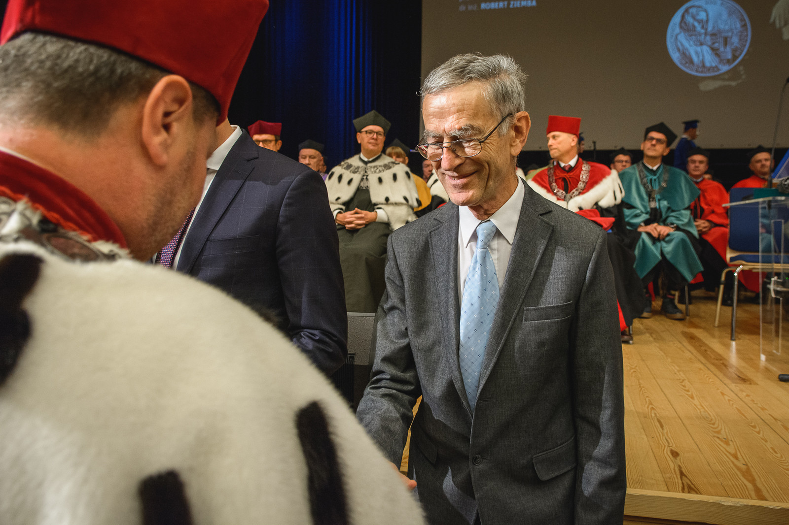 Ponadto rektor wręczył Medale „Zasłużonym dla Politechniki Rzeszowskiej”. Z naszego wydziału otrzymali je byli dziekani: prof. dr hab. Tadeusz Paszkiewicz w uznaniu zasług dla rozwoju Politechniki Rzeszowskiej oraz prof. dr hab. Dov Bronisław Wajnryb za długoletnią wzorową pracę naukową, dydaktyczną i organizacyjną.