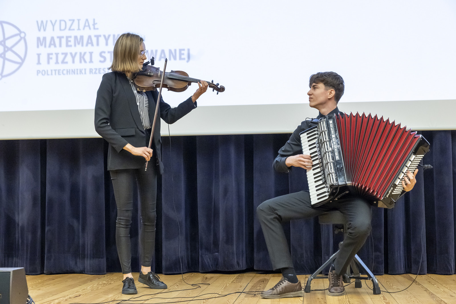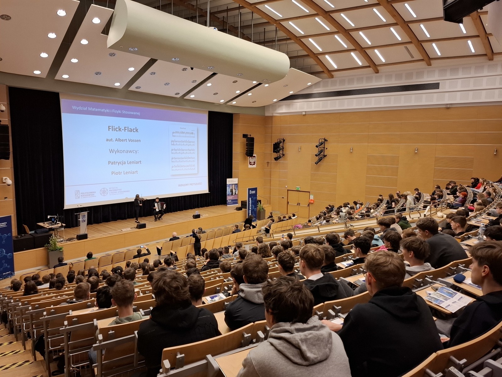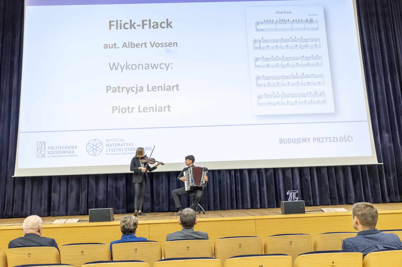 Uroczystość uświetnił występ duetu absolwentki inżynierii w medycynie, pani inż. Patrycji Leniart (skrzypce) oraz pana Piotra Leniarta (akordeon), którzy wykonali utwór Flick-Flack Alberta Vossena.