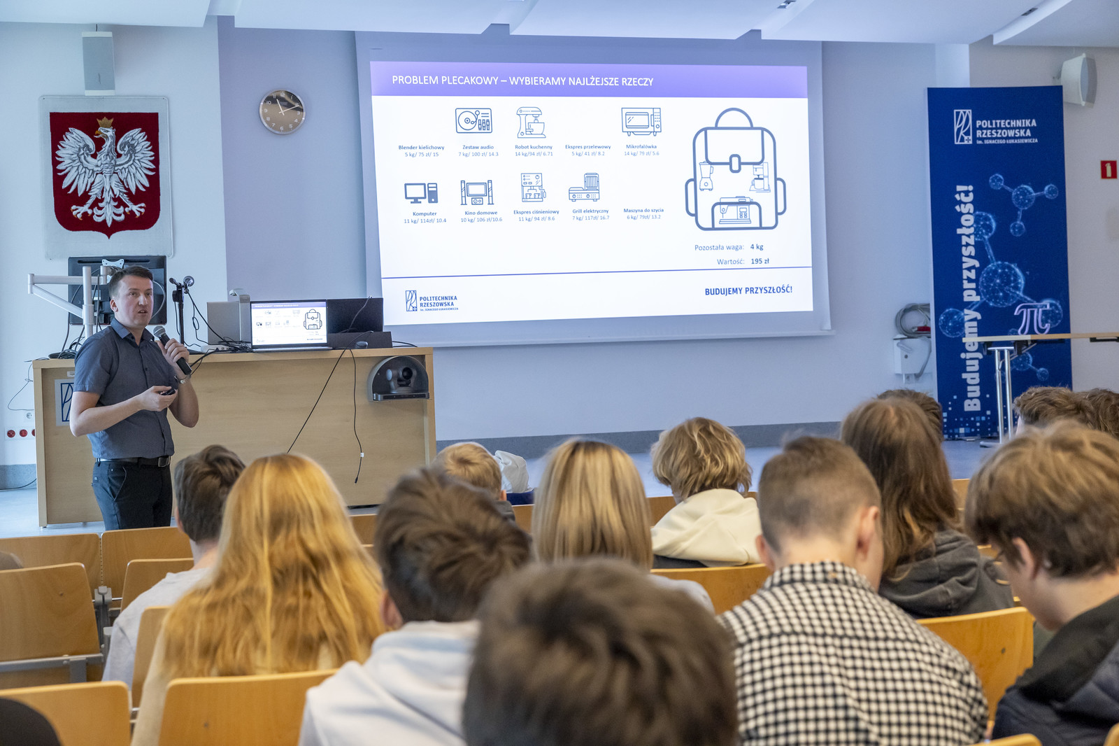 14 marca już po raz trzeci pracownicy i studenci Wydziału Matematyki i Fizyki Stosowanej zorganizowali na Politechnice Rzeszowskiej obchody Dnia Liczby π. W wydarzeniu uczestniczyło około 1100 uczniów z 20 szkół średnich z całego Podkarpacia, w tym z Rzeszowa (III LO, IV LO, IX LO, Liceum Sióstr Pijarek, Społeczne LO, Zespół Szkół Ekonomicznych) oraz z Jasła (II LO), Brzozowa (I LO), Dębicy (II LO, Zespół Szkół nr 2), Kolbuszowej (LO), Boguchwały (LO), Rymanowa (LO), Przemyśla (III LO), Przeworska (I LO), Leżajska (Zespół Szkół Technicznych), Mielca (Zespół Szkół Ekonomicznych, V LO), Łańcuta (Zespół Szkół nr 2) i Kołaczyc (LO).