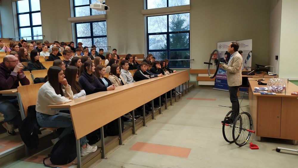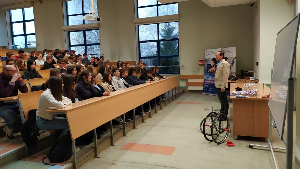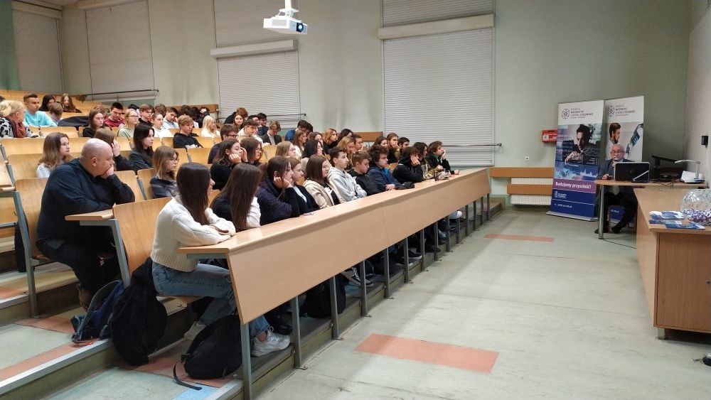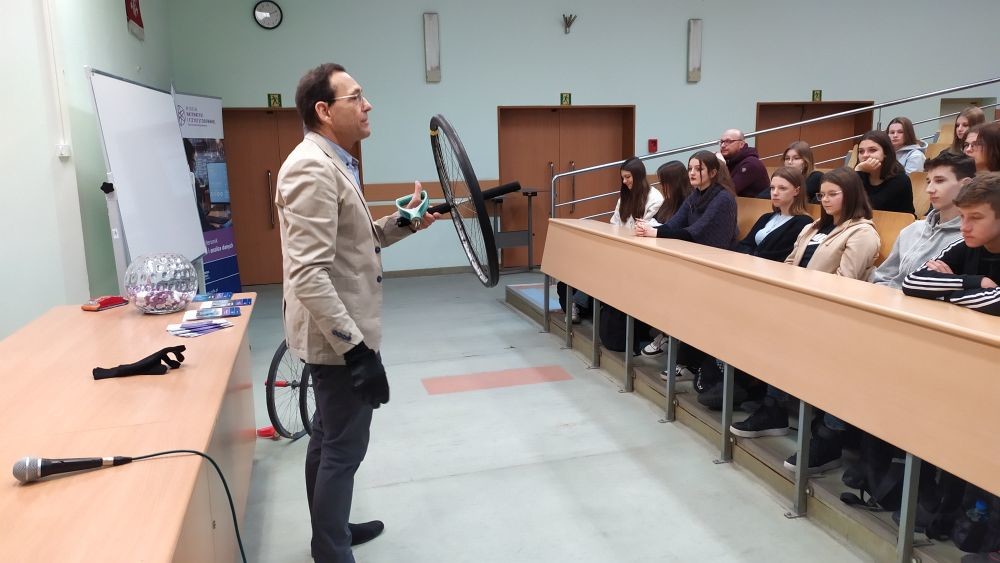W kolejnym cyklu trzech wykładów, który odbył się 23-11-2022 r. wzięli udział uczniowie rzeszowskich liceów: VIIILO i XIX LO. W ramach tego spotkania dr hab. Tomasz Więcek, prof. PRz wygłosił wykład pt „Jak zabezpieczyć się przed blockout", a dr Jan Mamczur zapoznał uczniów z praktycznym zastosowaniem fizyki przedstawiając zagadnienia związane z działaniem żyroskopu oraz problemem jednostronnego podparcia mostu.