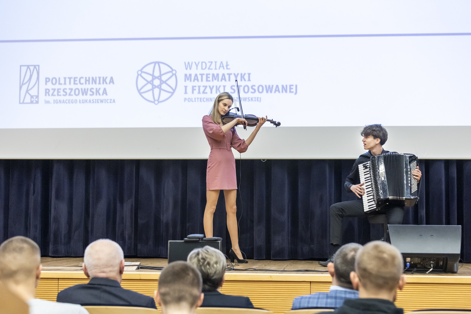 Uroczystość uświetnił występ duetu absolwentki inżynierii w medycynie pani inż. Patrycji Leniart (skrzypce) oraz pana Piotra Leniarta (akordeon).