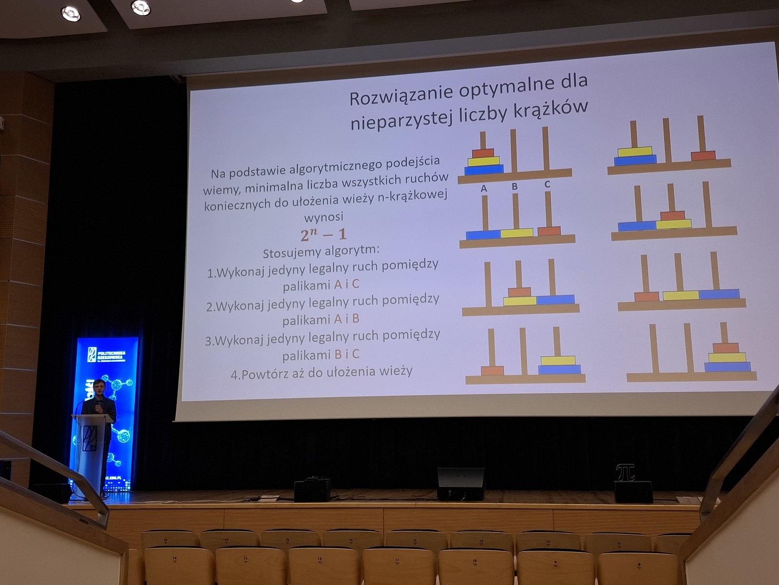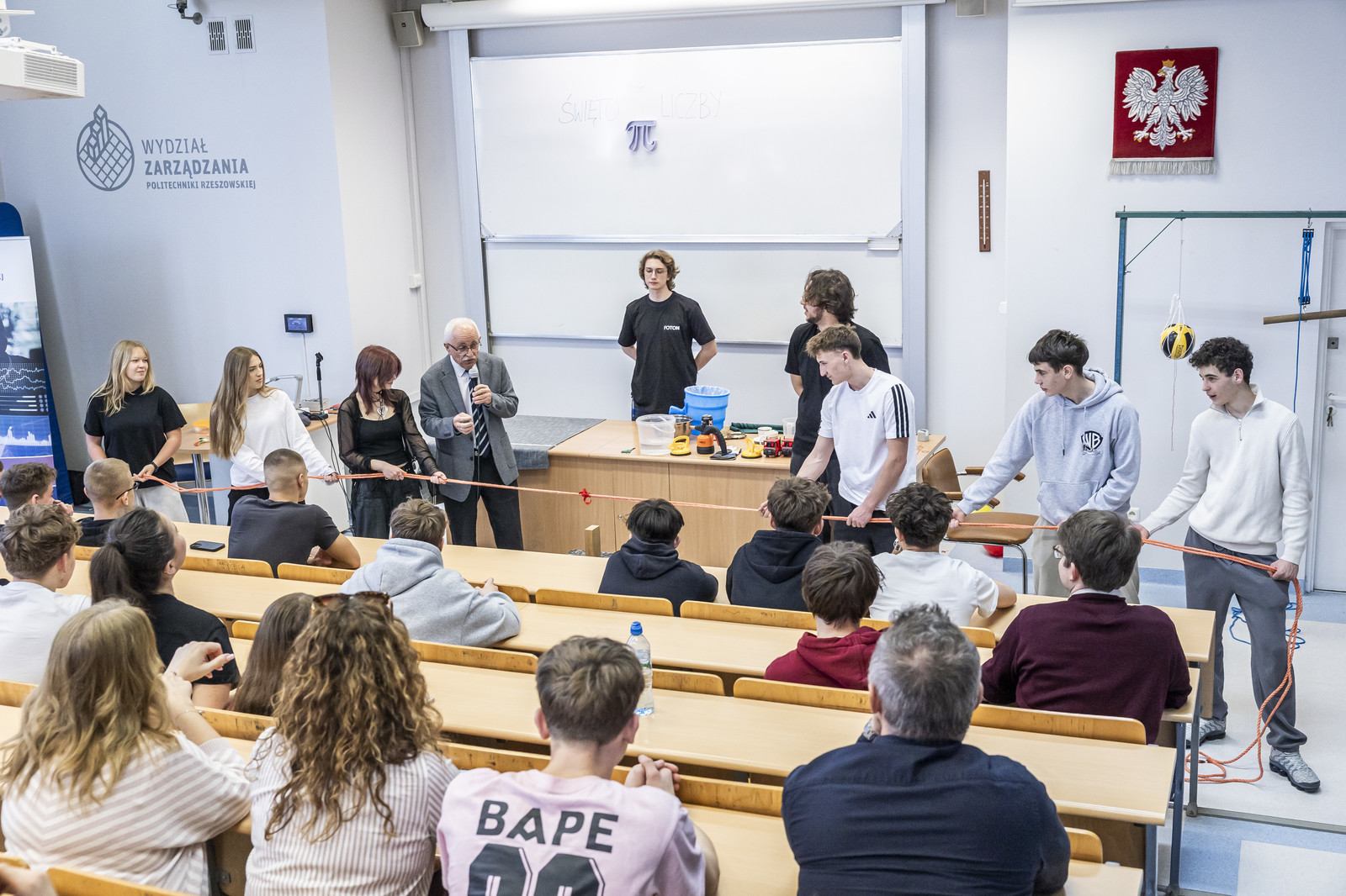 13 marca już po raz czwarty pracownicy i studenci Wydziału Matematyki i Fizyki Stosowanej zorganizowali na Politechnice Rzeszowskiej obchody Dnia Liczby π. W wydarzeniu uczestniczyło ponad 1100 uczniów z 24 szkół średnich z całego Podkarpacia, w tym z Rzeszowa (IV LO, VIII LO, IX LO, Liceum Sióstr Pijarek, Społeczne LO, Zespół Szkół Ekonomicznych) oraz z Brzozowa (I LO), Leżajska (Zespół Szkół Technicznych), Ustrzyk Dolnych (LO), Rymanowa (LO), Przemyśla (III LO), Przeworska (I LO), Mielca (V LO), Stalowej Woli (Zespól Szkół Nr 2, I LO, LO Samorządowe), Tarnobrzega (Społeczne LO), Krosna ( Zespół Szkół Ekonomicznych i Ogólnokształcących, Zespół Szkół Naftowo -Gazowniczych), Łańcuta (Zespół Szkół nr 2) i Kołaczyc (LO), Ropczyc (LO), Błażowej (LO) i Brzostka (Zespół Szkół Centrum Kształcenia Rolniczego).