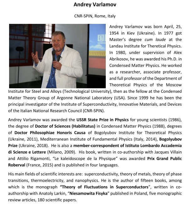 Nasz gość jest uznanym w całym świecie włoskim naukowcem pochodzenia ukraińskiego. Jest laureatem wielu prestiżowych międzynarodowych nagród. Jest wybitnym specjalistą z teorii nadprzewodnictwa, fizyki metali oraz nanofizyki. W swojej karierze naukowej blisko współpracował z Alexeiem Abrikosovem – laureatem nagrody Nobla z zakresu nadprzewodnictwa i nadciekłości.