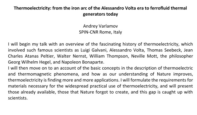 wykład pt. Thermoelectricity: from the iron arc of the Alessandro Volta era to ferrofluid thermal generators today