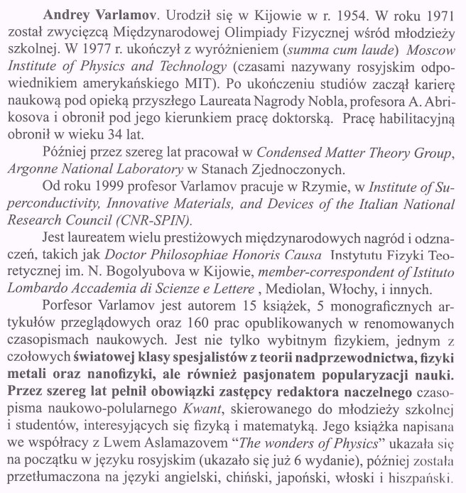 Profesor Andrey Varlamow jest również znakomitym popularyzatorem nauki – a jego książka „Niesamowita fizyka” doczekała się wielu tłumaczeń na całym świecie.