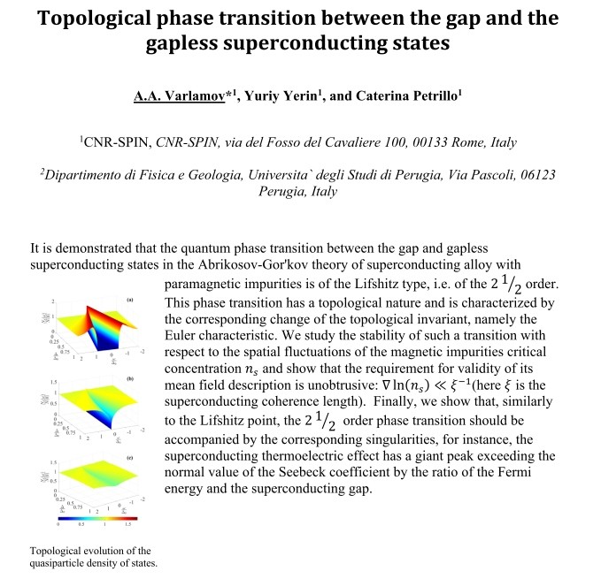 wykład pt. Topological phase transition between the gap and the gapless superconducting states