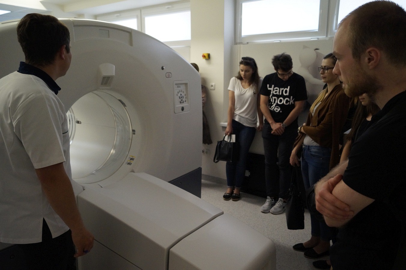 W poniedziałek, 29-05-2017r studenci Inżynierii Medycznej w ramach projektu PO WER mieli okazję odwiedzić jedyne na Podkarpaciu stanowisko do badań z użyciem pozytonowej tomografii emisyjnej (PET) znajdujące się w Zakładzie Medycyny Nuklearnej Voxel w Brzozowie na terenie Szpitala Specjalistycznego. Dzięki uprzejmości Zarządu Firmy, dyrektor ds. medycznych Pani Katarzyny Pluty oraz profesjonalnemu personelowi studenci mieli okazję zapoznać się z najnowocześniejszymi procedurami i metodami badań z użyciem radiofarmaceutyków: metodami PET i SPECT.