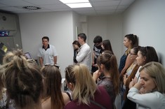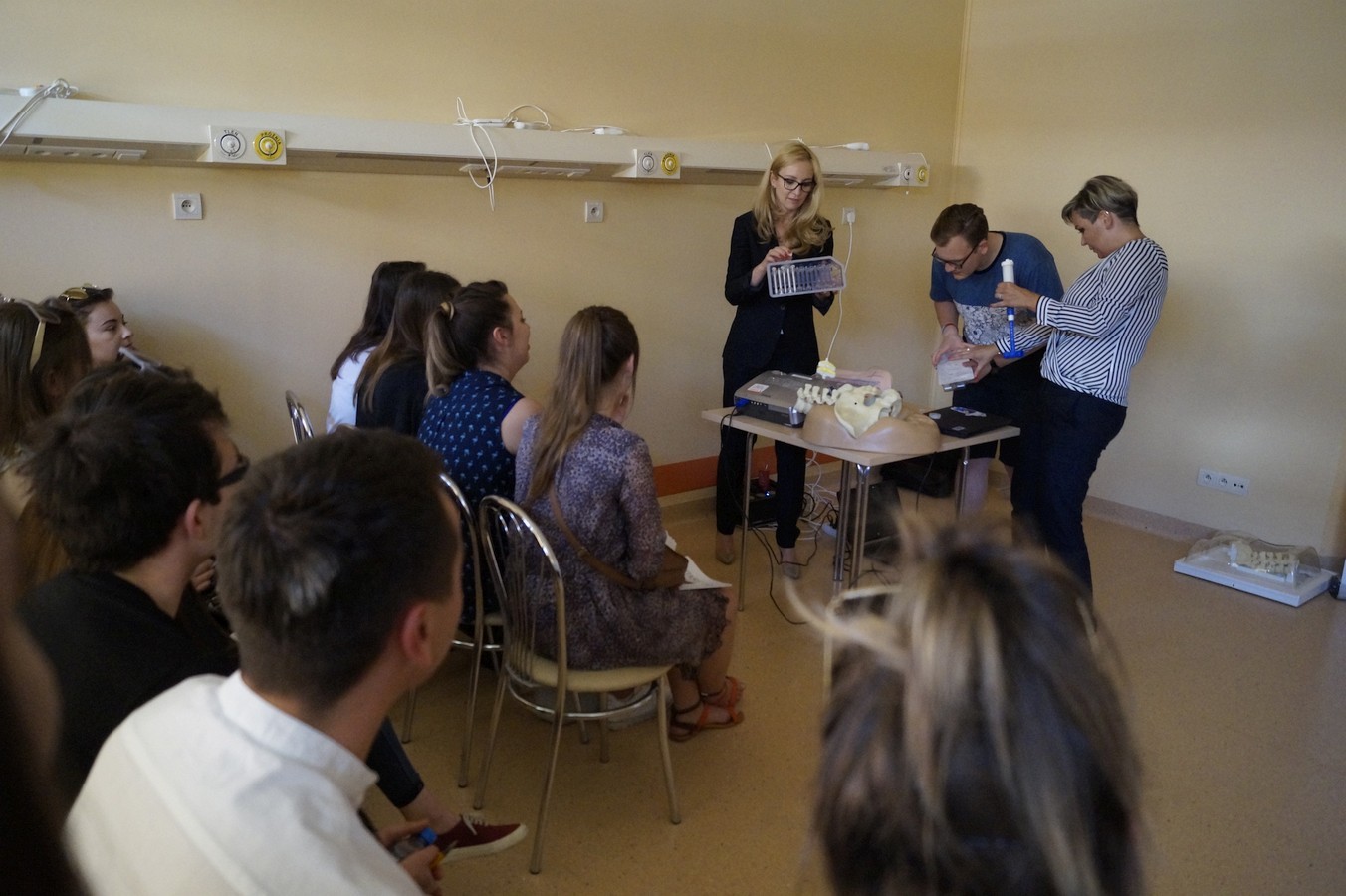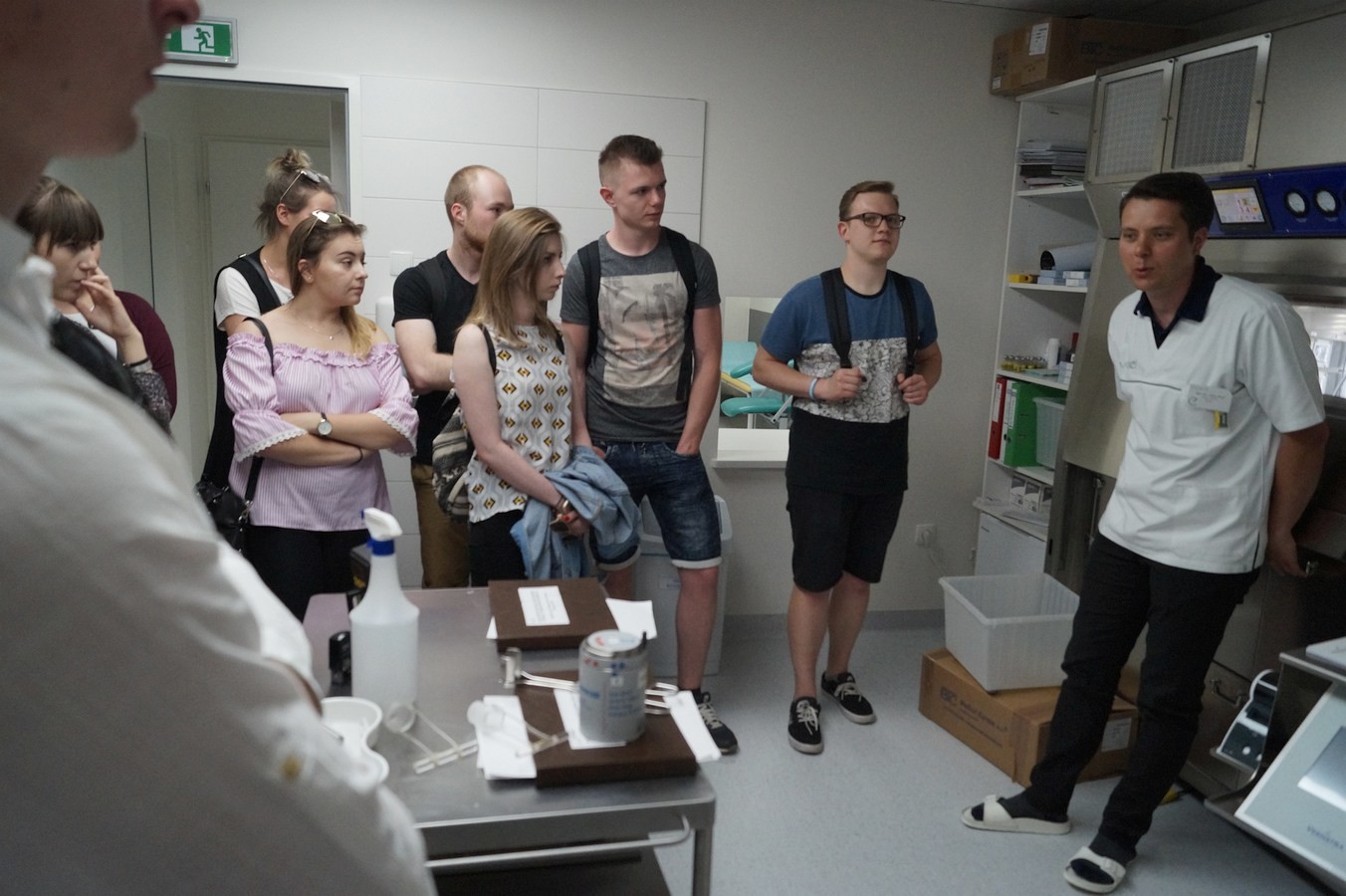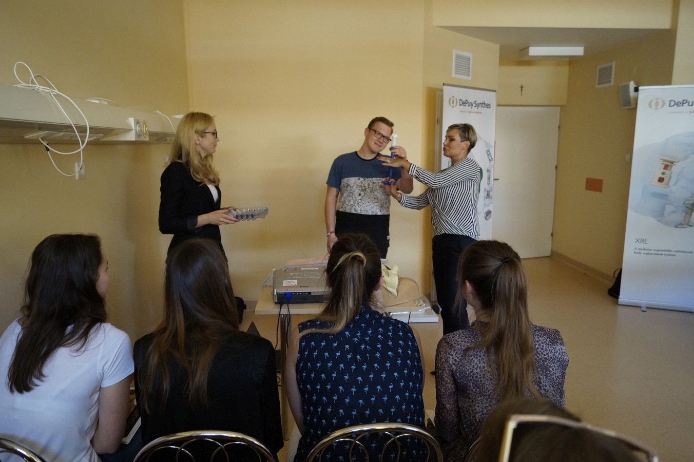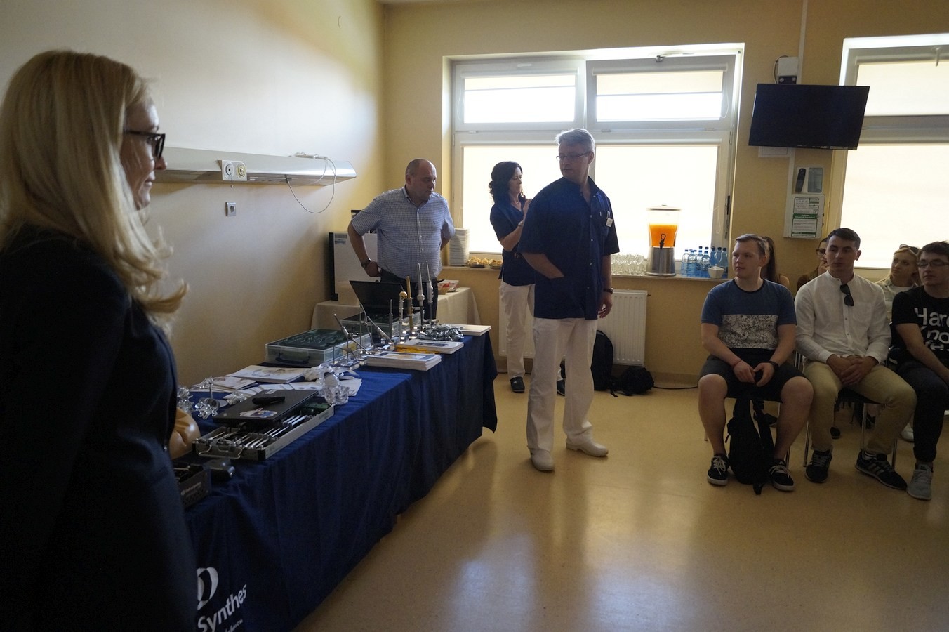 Oprócz wizyty w centrum diagnostycznym studenci dzięki uprzejmości ordynatora dr n. medycznych Grzegorza Guzika złożyli także wizytę w Zakładzie Ortopedii Onkologicznej. W ramach tej części wizyty zapoznali się ze specyfiką operacji resekcji kości, wszczepiania implantów kostnych, a także samymi implantami i narzędziami stosowanymi podczas operacji. Studenci mieli okazję porozmawiać ze specjalistami i poznać oczekiwania lekarzy jakie stawiają przed nimi jako przyszłymi absolwentami Inżynierii Medycznej stawiają lekarze. Wizytę zakończyły warsztaty związane z metodologią osadzania implantów zorganizowane przez firmę DePuySynthes – producenta implantów.