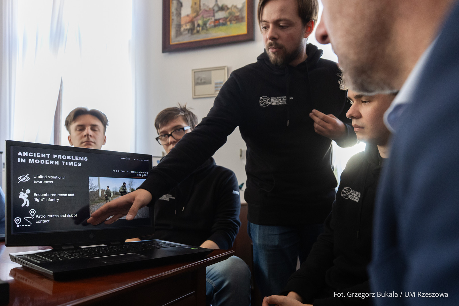 W dniu 13 marca 2026 roku Prezydent Rzeszowa, Konrad Fijołek, zaprosił do ratusza studentów z Koła Naukowego Machine Learning. Spotkanie dotyczyło zwycięskiego projektu koła, zaprezentowanego podczas hackathonu Detect & Defend, który odbył się w dniach 6–8 marca 2026 roku. W trakcie wydarzenia członkowie koła przedstawili innowacyjne rozwiązanie oparte na rozproszonej sieci radiowej, wykorzystującej wiele czujników, takich jak kamery i mikrofony. Projekt wyróżnił się na tle konkurencji i zdobył pierwsze miejsce w maratonie programistycznym.