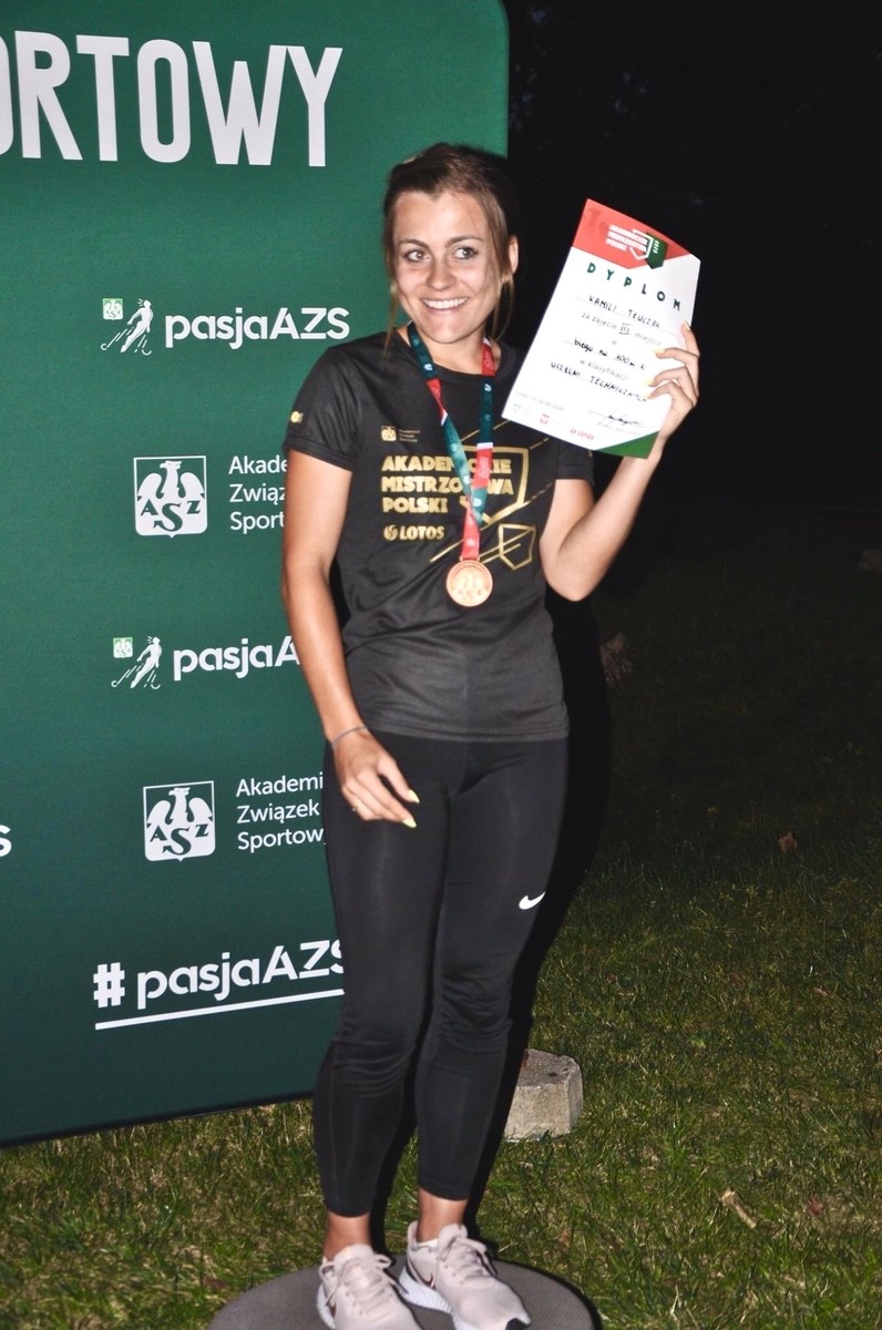 Miło nam poinformować, że pani Kamila Tłuczek studentka czwartego roku inżynierii medycznej zdobyła dwa brązowe medale w Akademickich Mistrzostwach Polski w lekkiej atletyce, które odbywały się w dniach 13-16 września 2020 roku w Łodzi. 14 września pani Kamila wywalczyła brązowy medal w kategorii uczelni technicznych w biegu na 100 m uzyskując wynik 12,89 s. W następnym dniu zmagań zdobyła kolejny brązowy medal w biegu na 200 m.