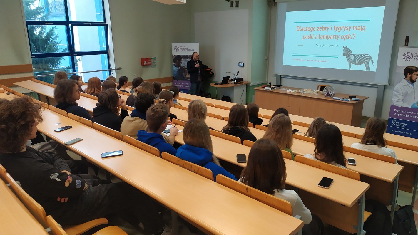 Wykłady akademickie z zakresu matematyki, fizyki i inżynierii medycznej cieszyły się bardzo dużym zainteresowaniem wśród uczniów – tylko te piątkowe przyciągnęły ponad 700 uczniów ze szkół średnich z całego Podkarpacia. W przygotowanie i przeprowadzenie wykładów zaangażowali się pracownicy wszystkich jednostek naszego Wydziału: dr Krzysztof Piejko, dr Janusz Dronka, dr inż. Marcin Kowalik, dr inż. Dawid Jaworski, dr Sławomir Wolski, dr Tomasz Zając, mgr Justyna Madej, dr hab. inż. Tomasz Więcek, prof PRz, dr Violetta Bednarska-Buczek, dr Dorota Jakubczyk, prof. PRz, dr hab. Jarosław Górnicki, prof. PRz , dr Małgorzata Wołowiec-Musiał, dr Paweł Bednarz, dr inż. Michał Inglot, dr Szymon Dudek, dr n. med. Piotr Biega, dr Jan Mamczur, mgr inż. Wiktoria Wojnarowska, dr Grzegorz Sroka.