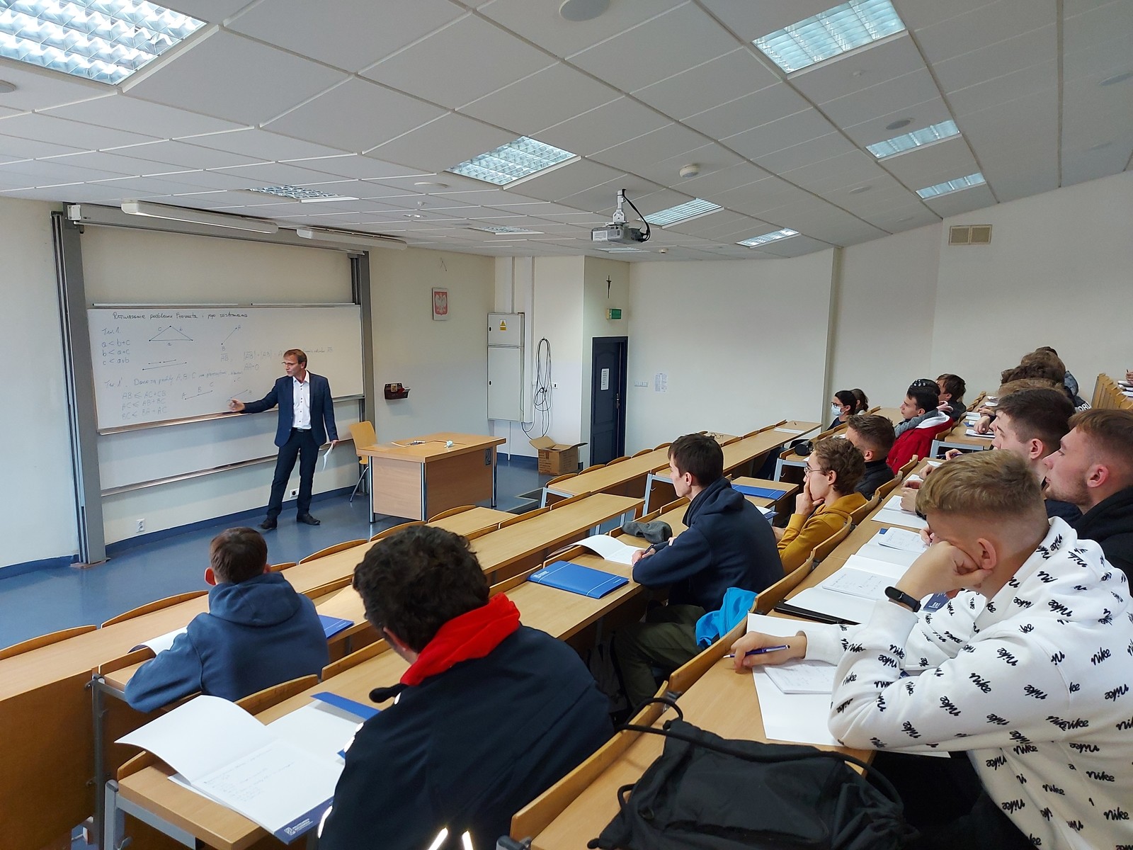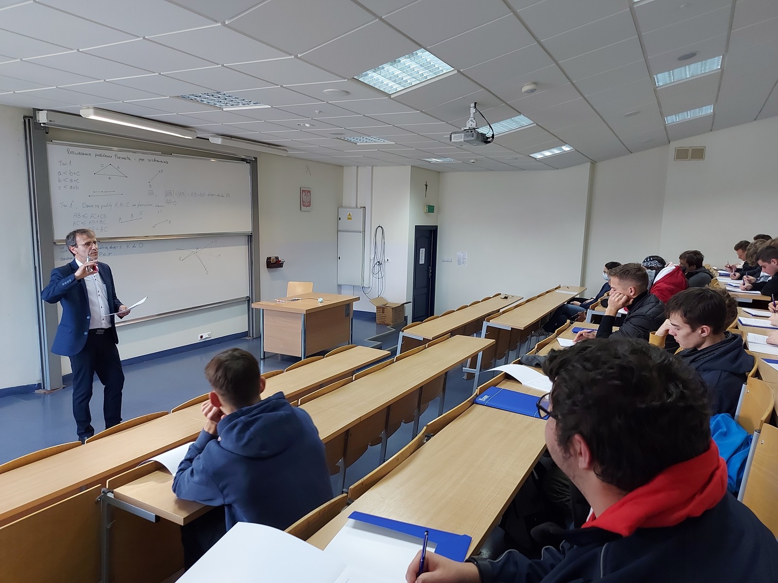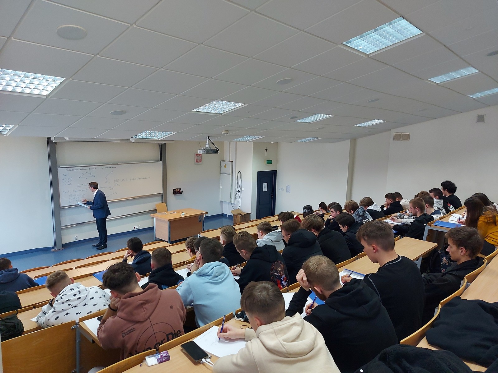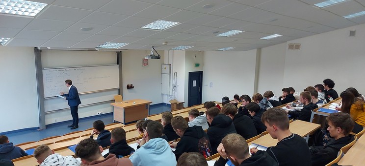 W dniu 16 listopada 2021 roku Wydział Matematyki i Fizyki Stosowanej odwiedziło kilkudziesięciu uczniów Zespołu Szkół Technicznych im. Tadeusza Kościuszki w Leżajsku wraz z opiekunami. Nasi goście uczestniczyli w wykładzie zatytułowanym „Rozwiązanie problemu Fermata i jego zastosowanie”, który wygłosił dla nich dr Krzysztof Piejko z Zakładu Modelowania Matematycznego.