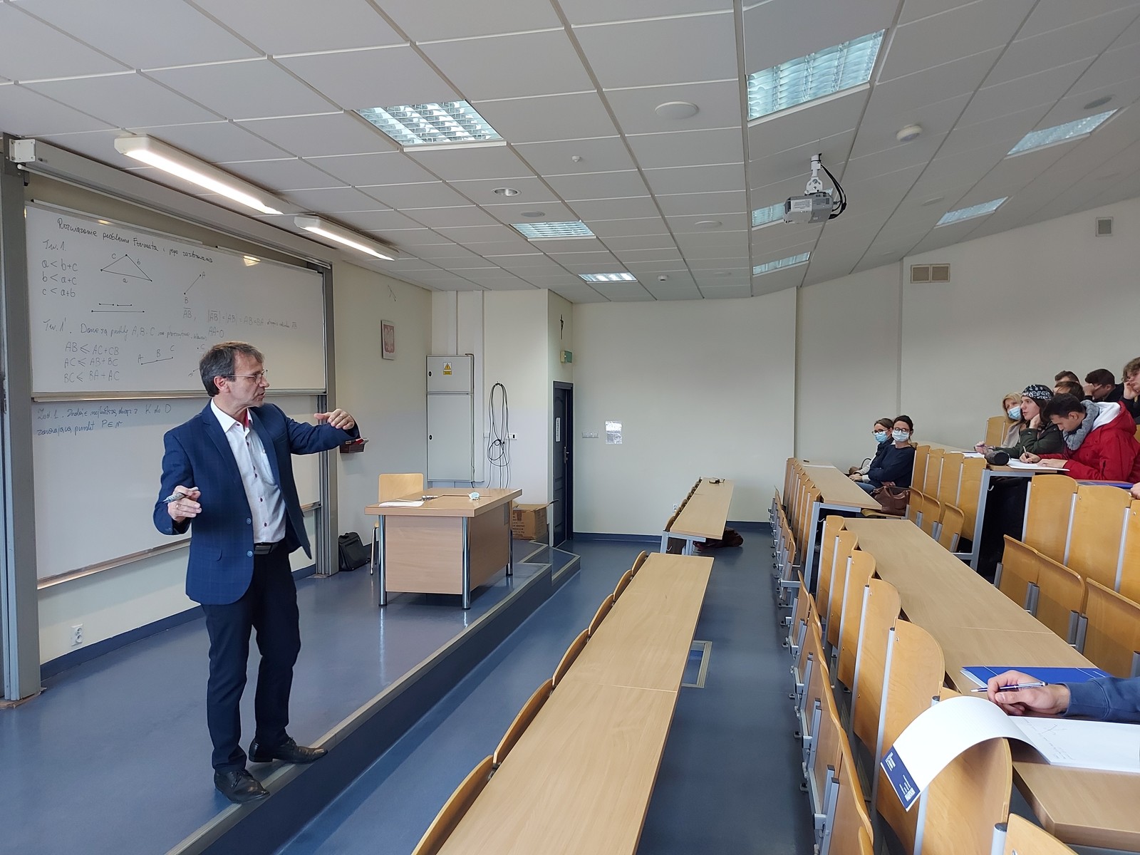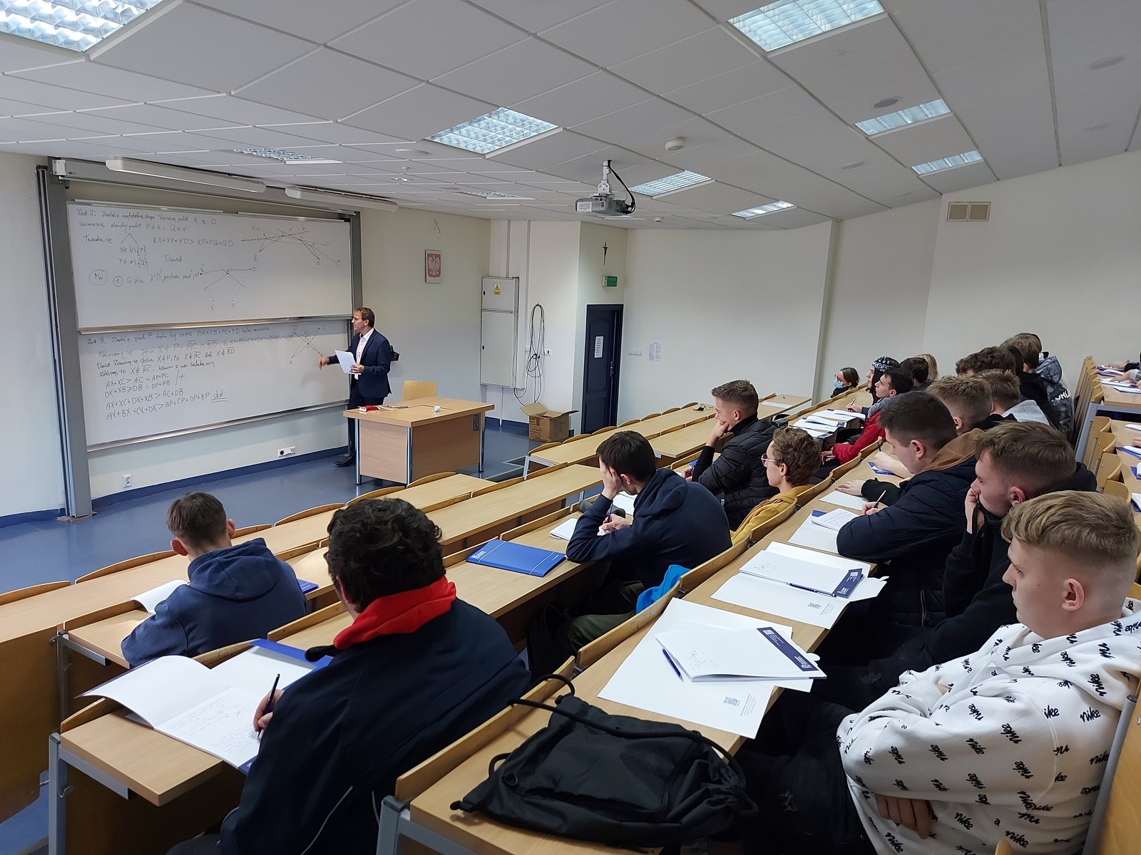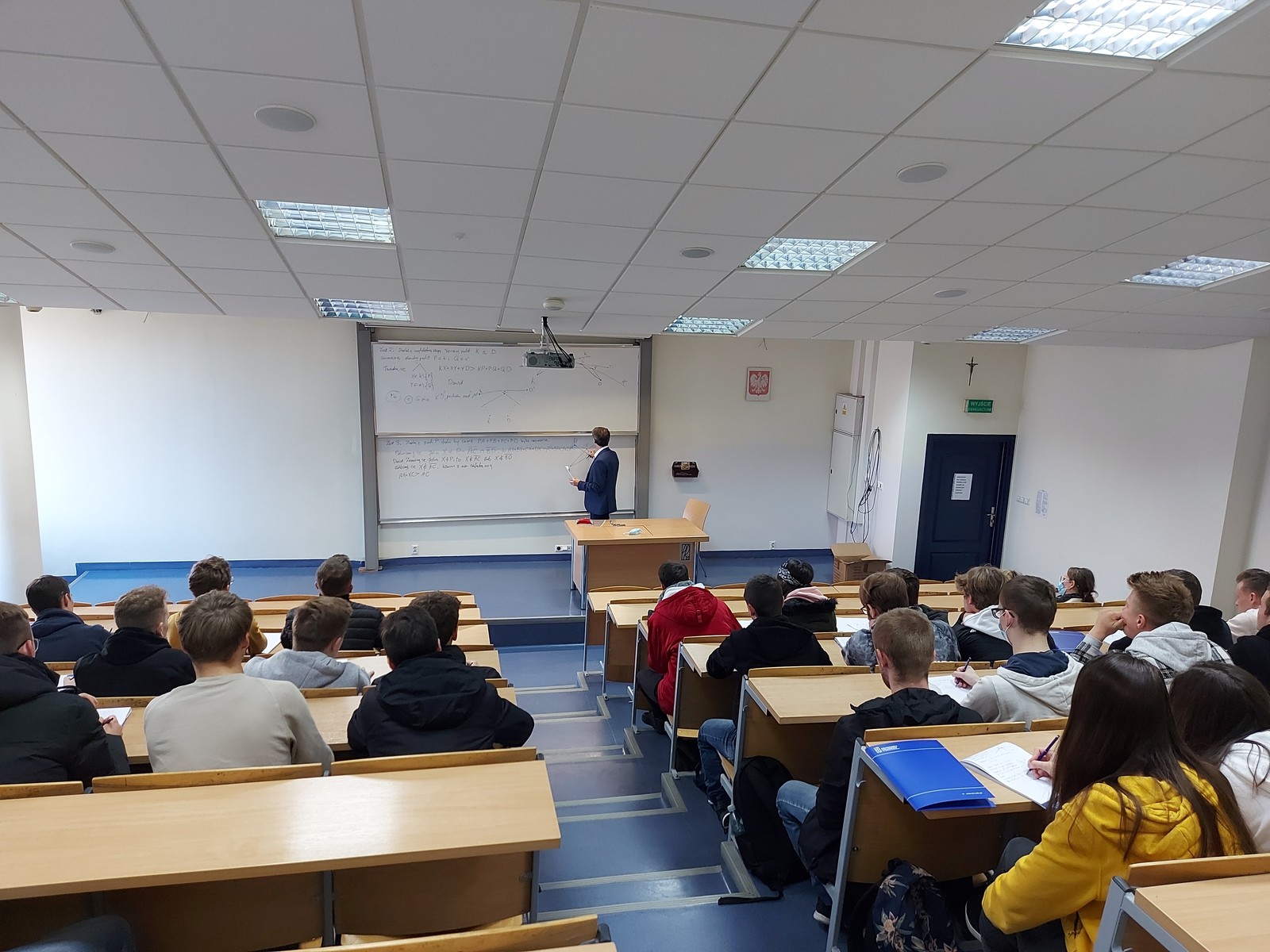 W dniu 16 listopada 2021 roku Wydział Matematyki i Fizyki Stosowanej odwiedziło kilkudziesięciu uczniów Zespołu Szkół Technicznych im. Tadeusza Kościuszki w Leżajsku wraz z opiekunami. Nasi goście uczestniczyli w wykładzie zatytułowanym „Rozwiązanie problemu Fermata i jego zastosowanie”, który wygłosił dla nich dr Krzysztof Piejko z Zakładu Modelowania Matematycznego.
