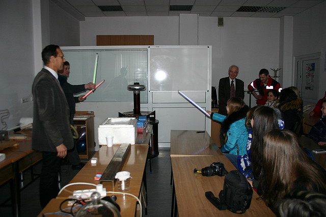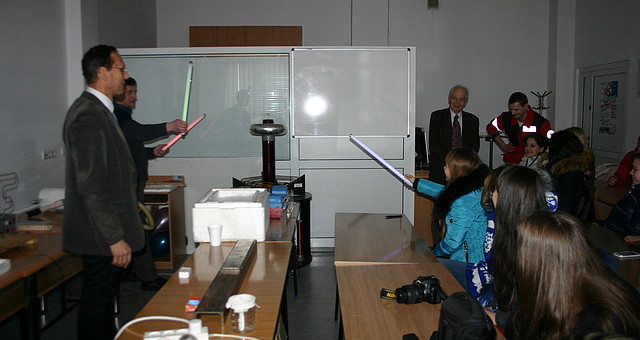W środę 14. stycznia br. Katedrę Fizyki Wydziału Matematyki i Fizyki Stosowanej zwiedzała grupa młodzieży z Ukrainy przebywająca w Polsce na zimowisku zorganizowanym przez Bieszczadzki Oddział Straży Granicznej oraz Podkarpacki Oddział Okręgowy PCK. Goście z Ukrainy oprócz pokazów z fizyki mieli możliwość zobaczenia laboratoriów naukowo-dydaktycznych w Katedrze Fizyki, w tym Pracowni Technik Laserowych oraz Laboratorium Biofizycznego.