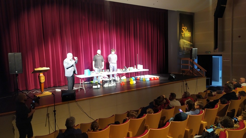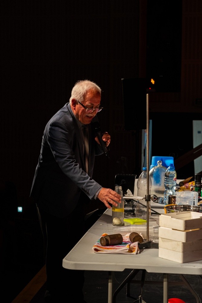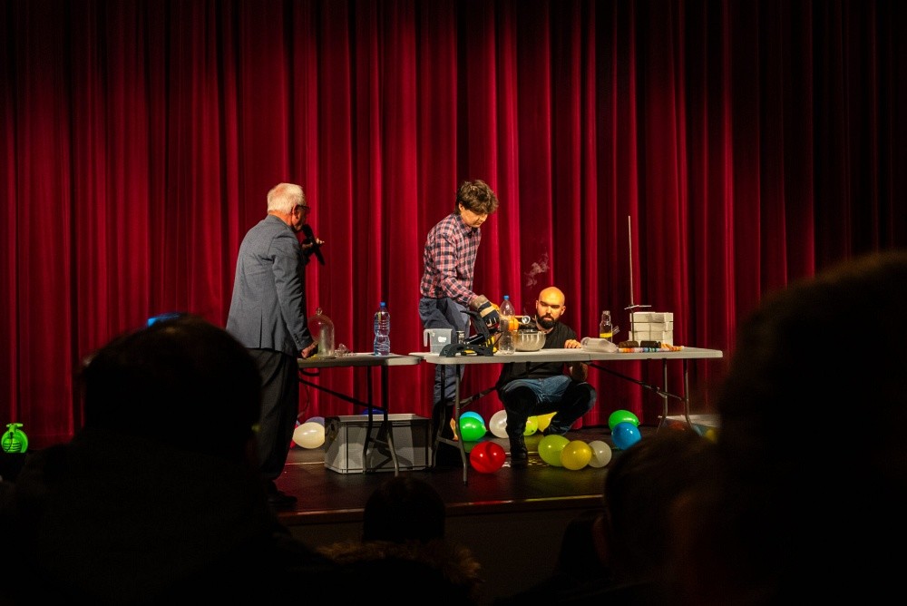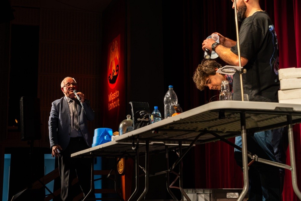 Zakończenie części „uczniowskiej” konferencji zostało uświetnione pokazami z fizyki, które poprowadził dr hab. Tomasz Więcek, prof. PRz w asyście studentów koła naukowego Foton.
