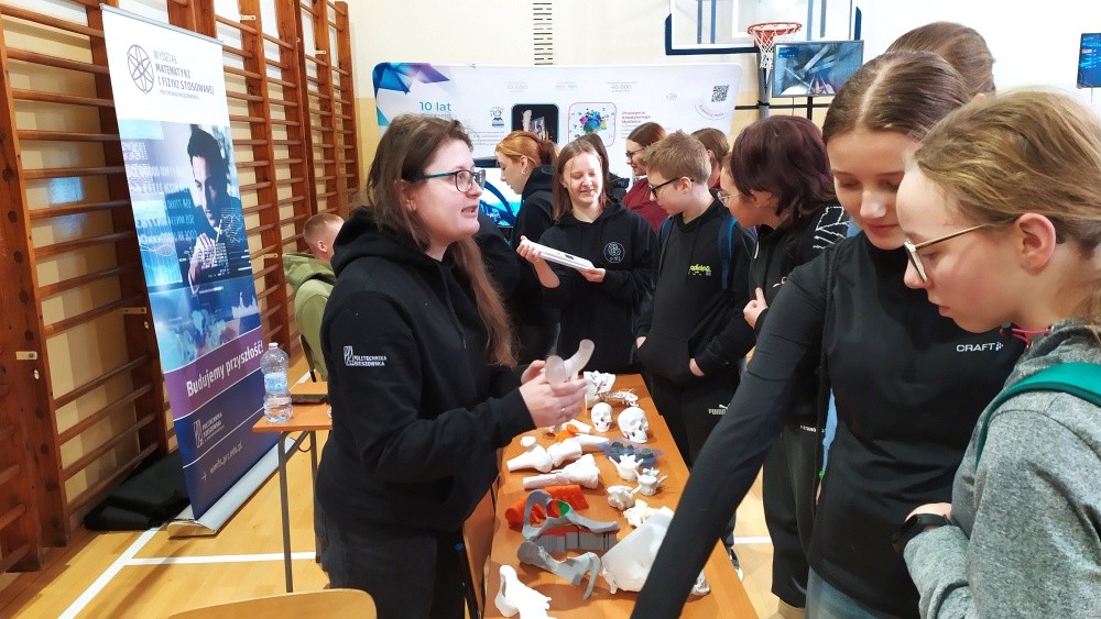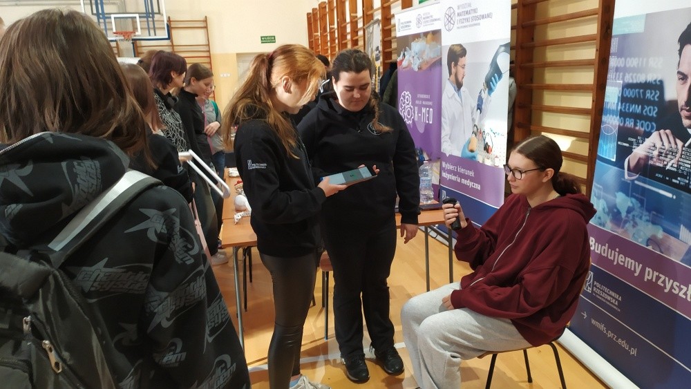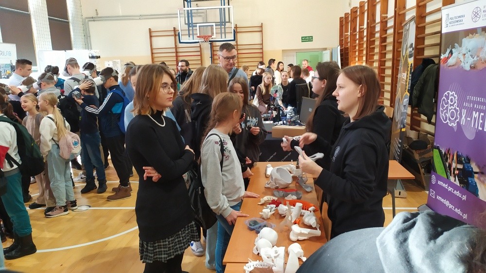 Dużym zainteresowaniem cieszyło się stoisko koła naukowego X-med, gdzie studenci pod opieką mgr inż. Wiktorii Wojnarowskiej prezentowali możliwości zastosowania współczesnej technologii w medycynie.