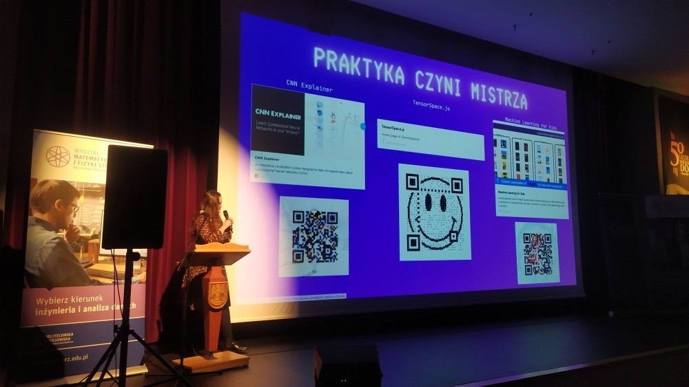 Specjalny panel wykładowy związany ze sztuczną inteligencja i przetwarzaniem obrazów dedykowany dla uczniów szkół średnich poprowadzili pracownicy i studenci WMiFS. Wykład pt. Sztuczna inteligencja – jak komputer rozpoznaje obrazy wygłosił dr Marcin Kowalik, o tworzeniu się obrazów w tomografie komputerowym opowiedział dr Sławomir Wolski, prof. PRz, a studenci reprezentujący koło naukowe Machine Learning: Aldona Świrad oraz Jakub Kryczka przedstawili referaty pt. Jak działają sieci neuronowe? oraz AI od strony hardware’owej.