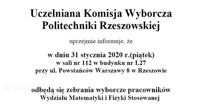 w celu wyłonienia członków Kolegium Elektorów Politechniki Rzeszowskiej.