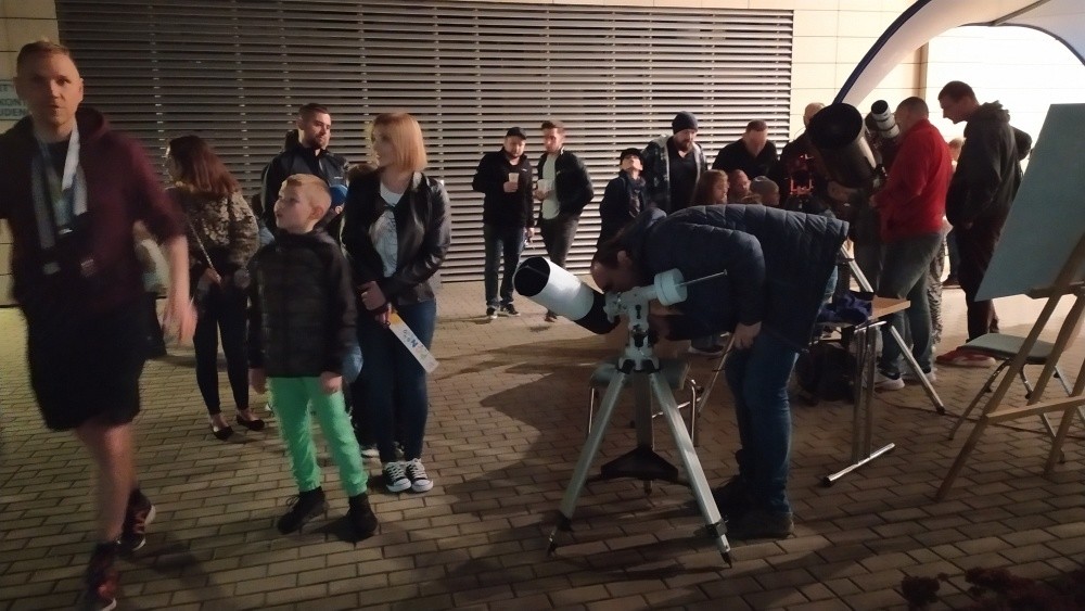 Wielką uwagę wśród dzieci i ich rodziców przyciągnęły również obserwacje astronomiczne, które prowadził dr inż. Marcin Kowalik. Jako pasjonat astronomii pokazywał i wyjaśniał młodym słuchaczom działanie teleskopu i ruchy planet. Zainteresowani mogli na żywo zobaczyć między innymi Satrurna, a chętnych do obserwacji było tylu, że te pokazy zakończyły się jako ostatnia aktywność Nocnych Spotkań z Nauką.