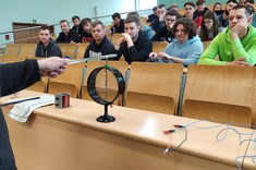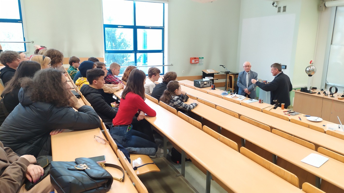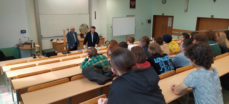 Tydzień wykładów z demonstracjami był też tygodniem inaugurującym inicjatywę wykładów otwartych na Politechnice Rzeszowskich prowadzonych przez doświadczonych wykładowców z Wydziału Matematyki i Fizyki Stosowanej. Jako pierwszy to właśnie prof. Tomasz Więcek przy asyście mgr inż. Bogdana Wosia zaprezentowali uczniom XI liceum ogólnokształcącego zjawiska z zakresu elektromagnetyzmu.