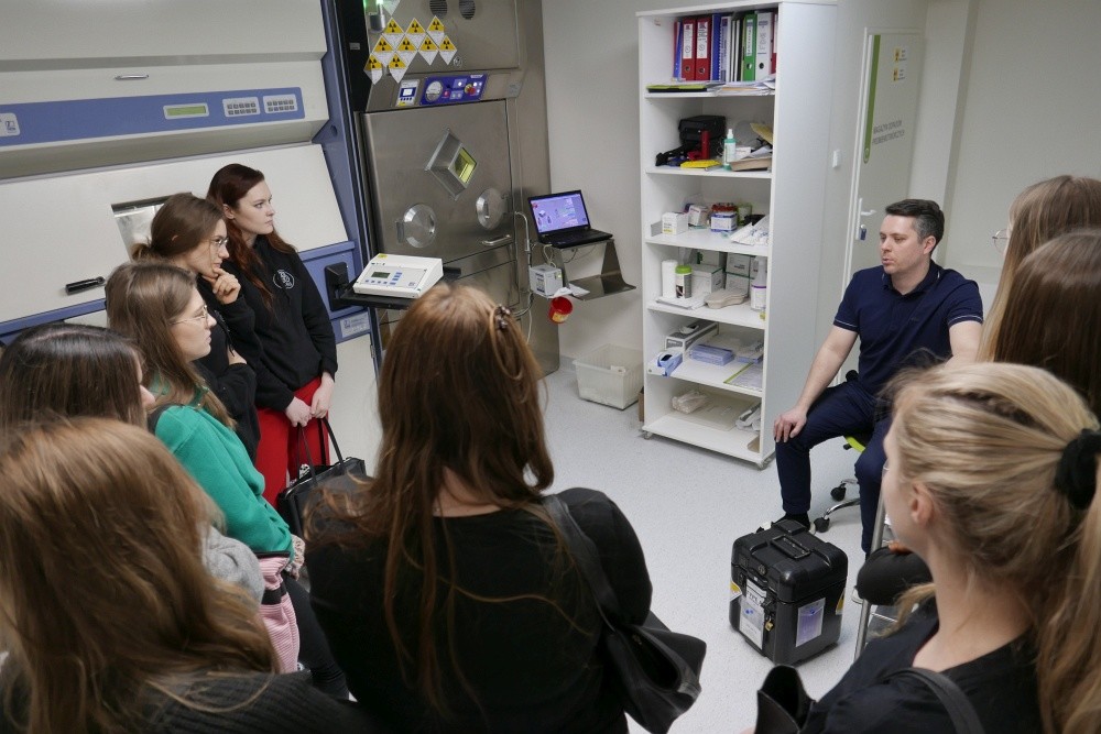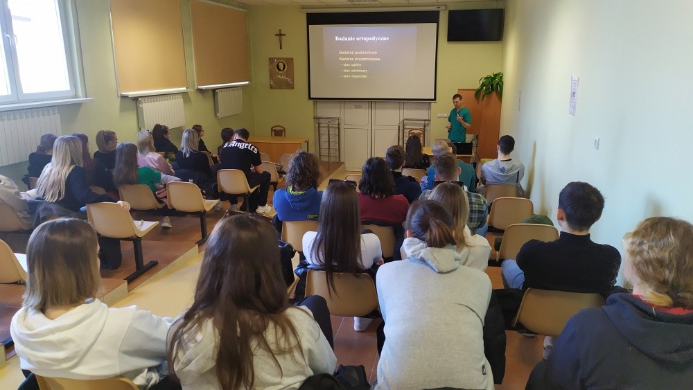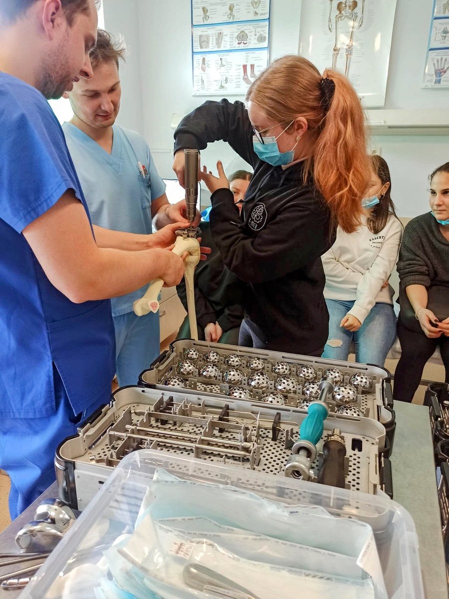 Studenci 2-go roku studiów I stopnia Inżynierii w medycynie uczestniczyli w praktycznych zajęciach z Podstaw ortopedii prowadzonych przez specjalistów z zakresu fizyki medycznej i ochrony radiologicznej: Rafała Kędziora oraz Adama Rząda (Voxel. S.A.) . Te zajęcia pozwoliły im na zapoznania się ze sprzętem. metodami i procedurami diagnostycznymi i terapeutycznymi medycyny nuklearnej w zakresie wykrywania i leczenia zmian przerzutowych. Kolejne zajęcia, tym razem w zakresie rehabilitacji o operacjach wstawienia implantów oraz urazach prowadzili wykwalifikowania rehabilitanci z Oddziału Ortopedii onkologicznej: Jakub Czyżewski i Rafał Tesznar.