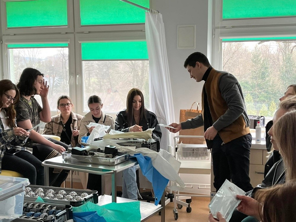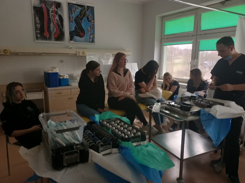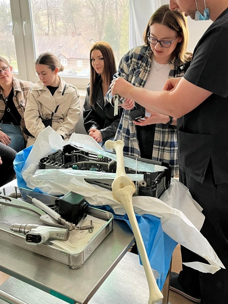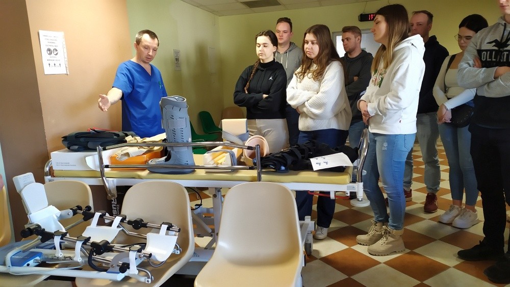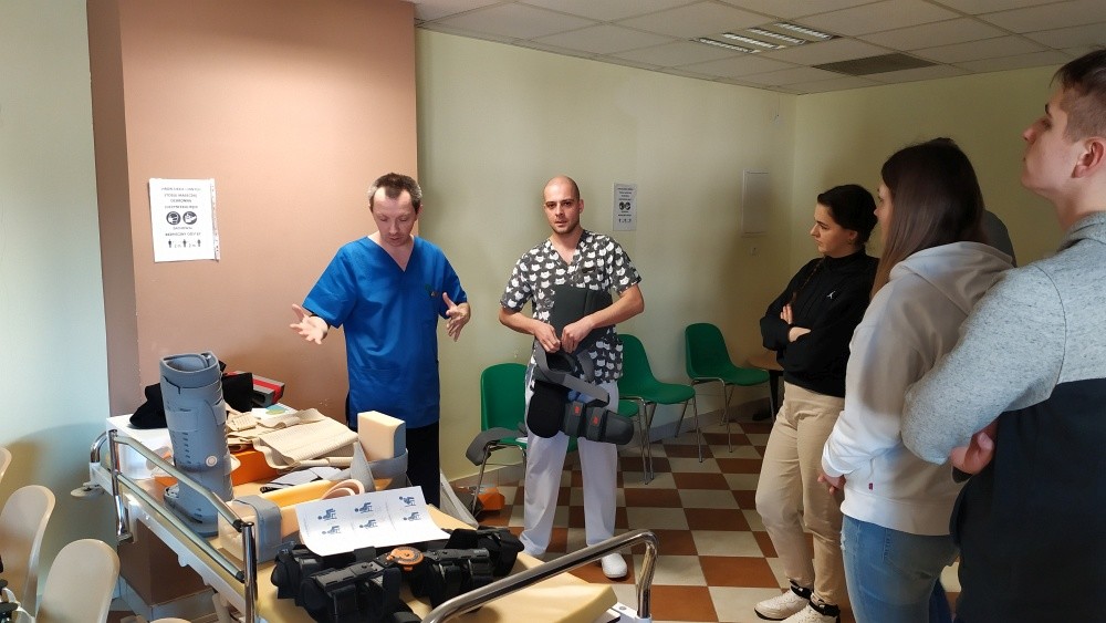 Studenci 1-go oraz 2-go studiów II-go stopnia wzięli udział w praktycznych zajęciach z Biomechaniki narządu ruchu oraz Dobrej praktyki klinicznej. Zajęcia praktyczne z Dobrej praktyki klinicznej poprowadziła dr n. o zdrowiu Beata Barańska, specjalista pielęgniarstwa chirurgicznego i onkologicznego oraz jednocześnie Konsultant Wojewódzki w dziedzinie Pielęgniarstwa dla obszaru Województwa Podkarpackiego oraz Rafał Kędzior specjalista fizyki medycznej, inspektor ochrony radiologicznej. Studenci mieli okazję zapoznać się z aspektami opieki nad pacjentem, rehabilitacją, prehabilitacją oraz aspektami bezpieczeństwa przy pracy z nuklearnymi systemami diagnostyki i rehabilitacji. W ramach zajęć z Biomechaniki narządu ruchu studenci pod opieką lek. med. Łukasza Warzyboka mieli okazję zapoznać się z instrumentarium chirurgicznym i metodami zespoleń i implantacji narządu ruchu.