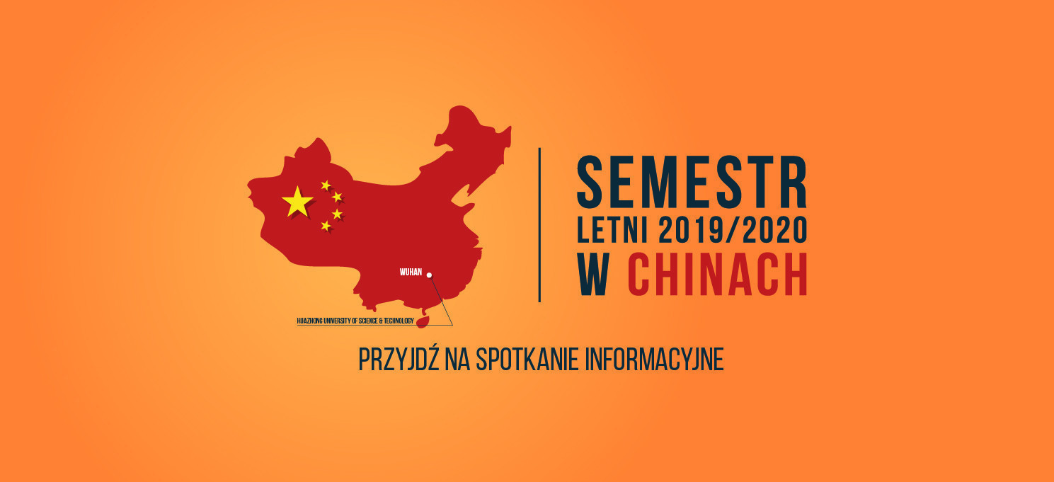 Zapraszamy studentów Wydziału Matematyki i Fizyki Stosowanej na spotkanie informacyjne dotyczące możliwości odbycia jednosemestralnych studiów w Chinach w renomowanej uczelni Huazhong University of Science and Technology w mieście Wuhan. Spotkanie odbędzie się w dniu 20 listopada 2019 roku (środa) o godzinie 11:30 w sali P-24. W spotkaniu udział wezmą studenci PRz, którzy mają za sobą semestr studiów w Chinach, prof. Grzegorz Ostasz, prorektor ds. współpracy międzynarodowej, Edyta Ptaszek, kierownik Działu Współpracy Międzynarodowej oraz Qinghua Zhang-Zyradzka, lektorka języka chińskiego.